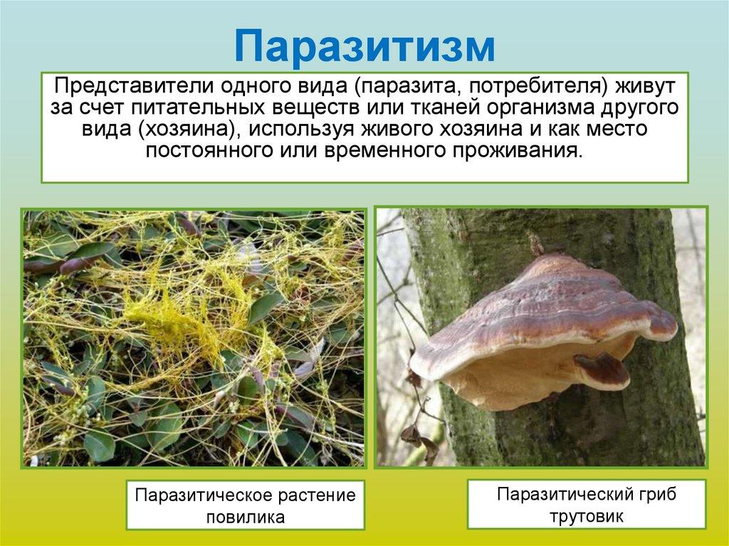 Представители одного вида (паразита, потребителя) живутза счет питательных веществ или тканей организма другого