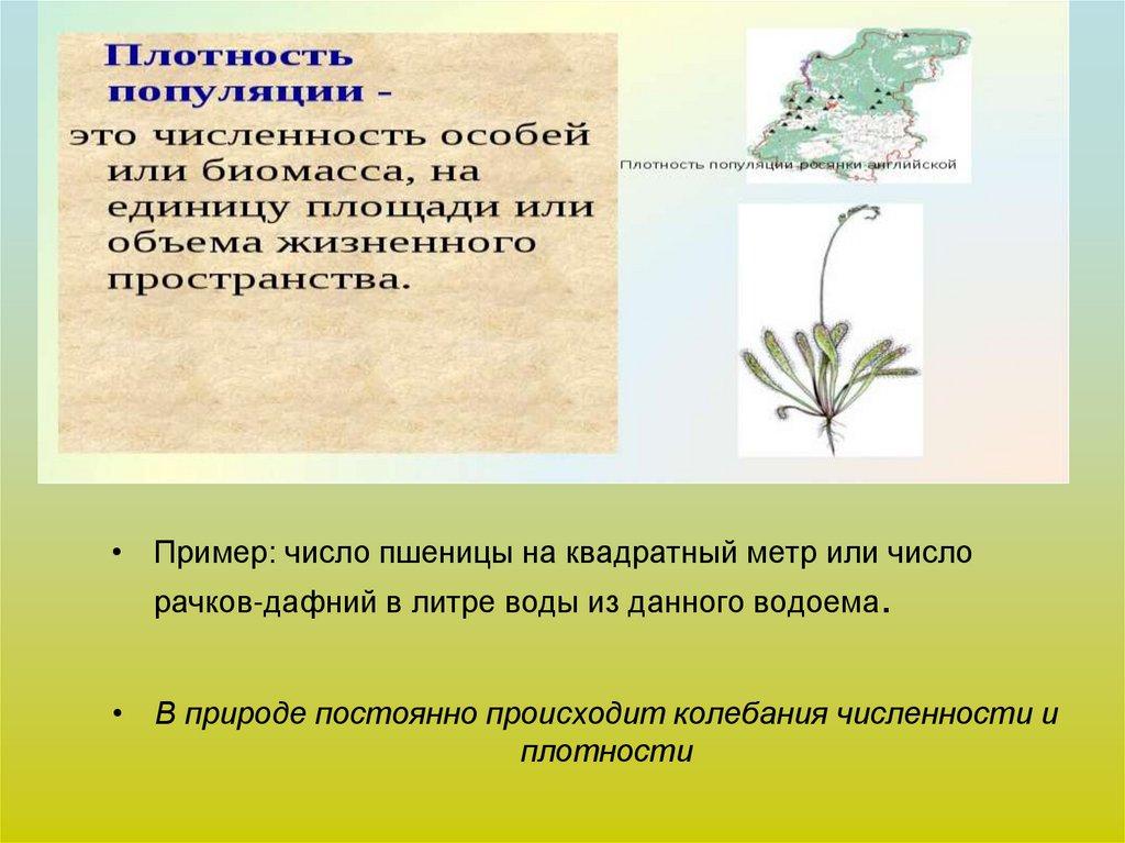 • Пример: число пшеницы на квадратный метр или числорачков-дафний в литре воды из данного водоема.
