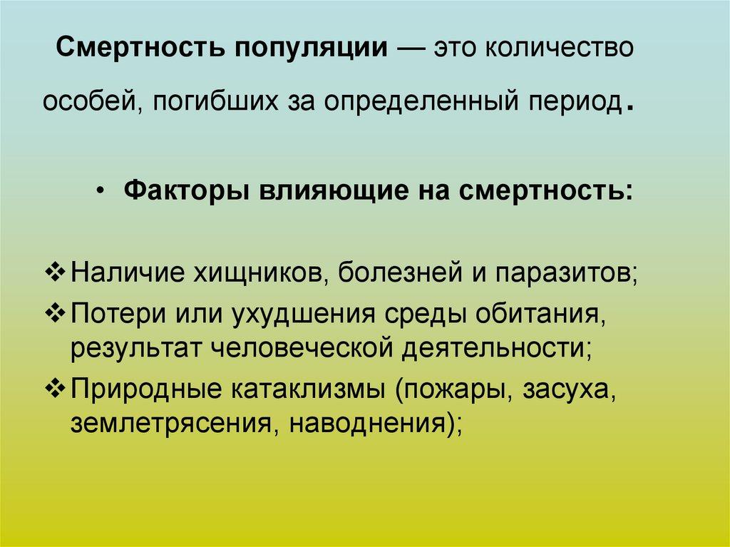 Смертность популяции — это количествоособей, погибших за определенный период.