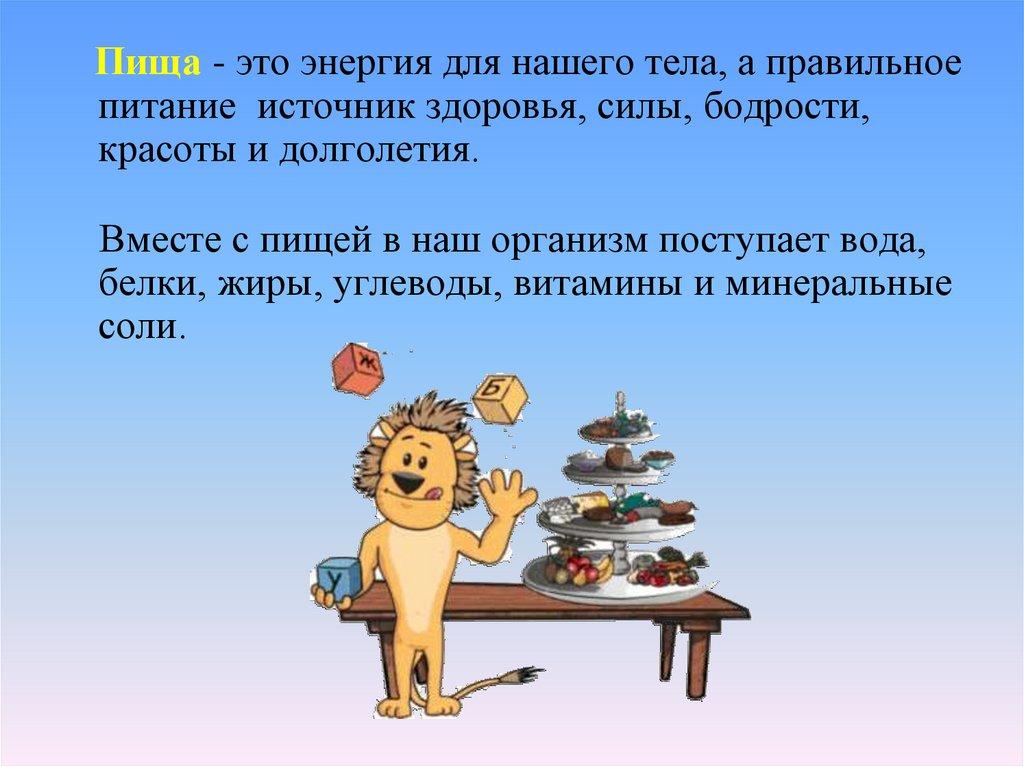 Пища - это энергия для нашего тела, а правильноепитание источник здоровья, силы, бодрости,