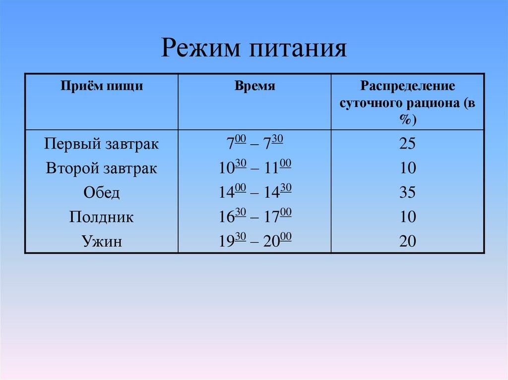 Режим питанияПриём пищи