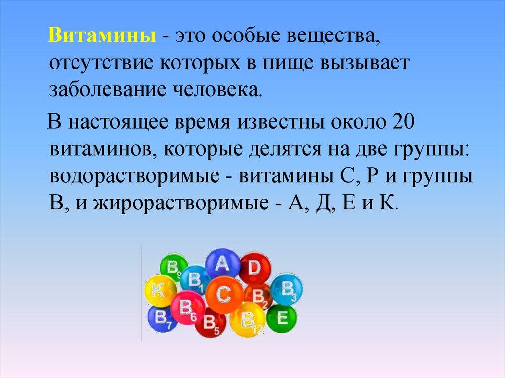 Витамины - это особые вещества,отсутствие которых в пище вызывает