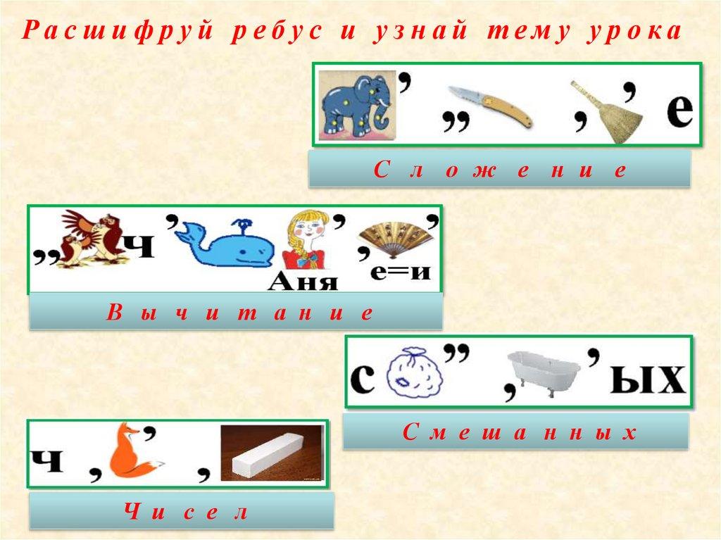 Расшифруй ребус и узнай тему урокаС л о ж е н и е