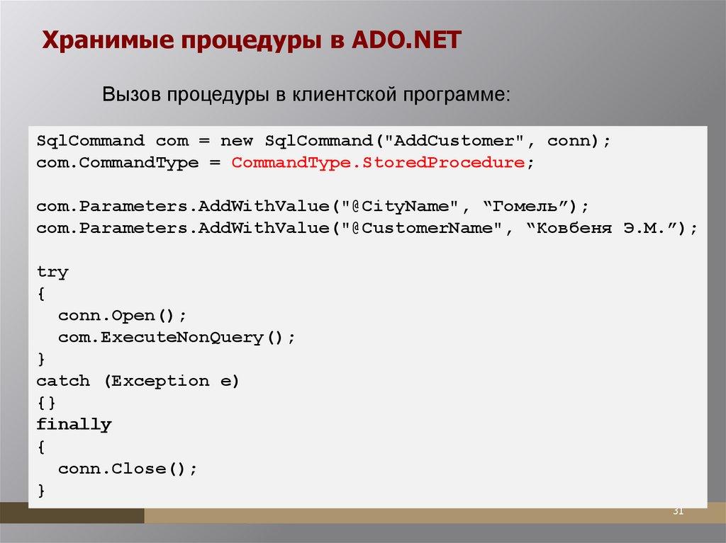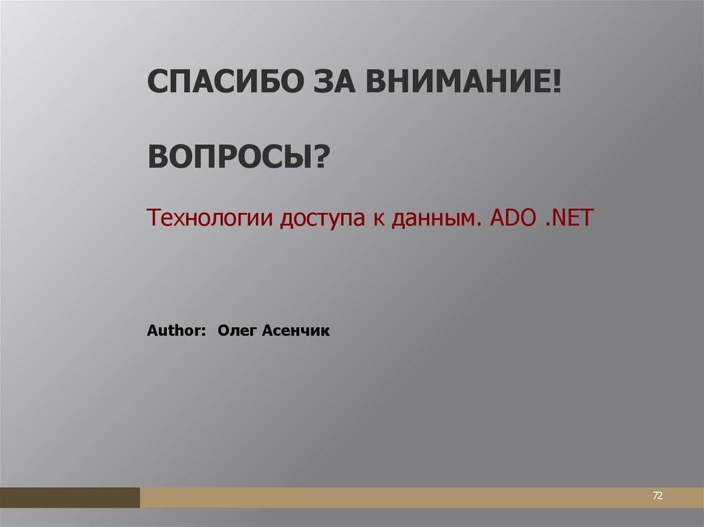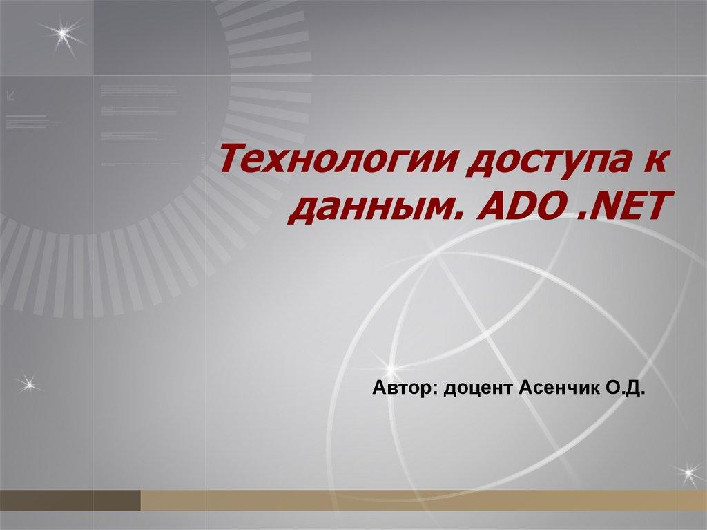 Технологии доступа кданным. ADO .NET