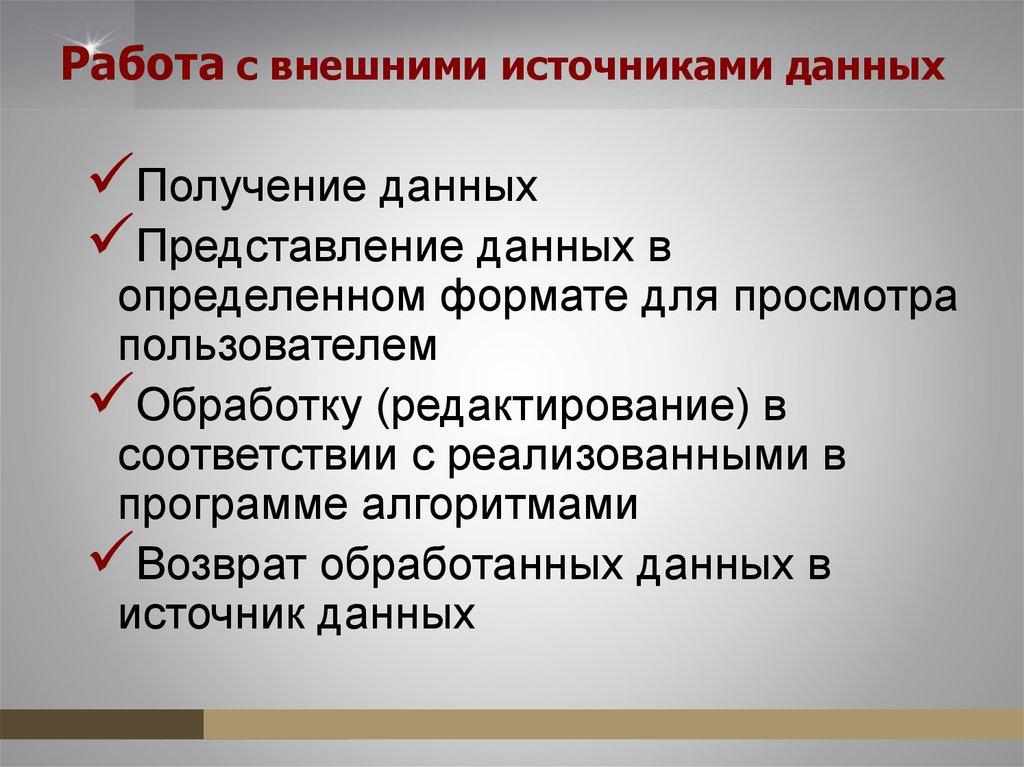 Работа с внешними источниками данныхПолучение данных