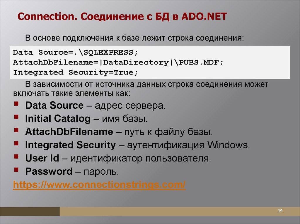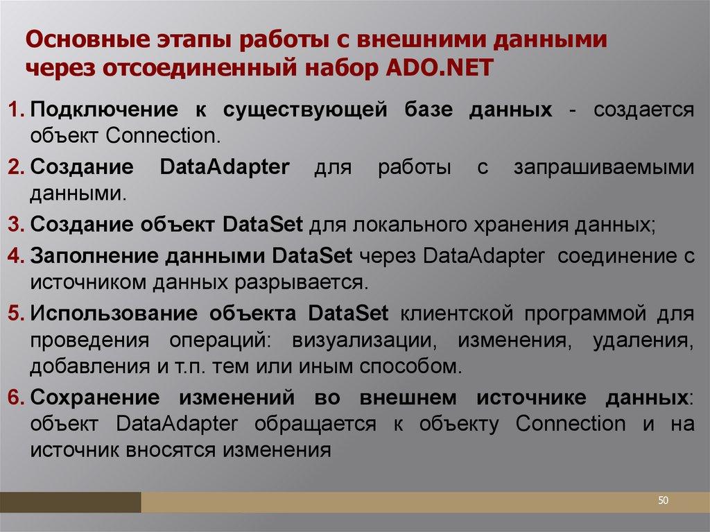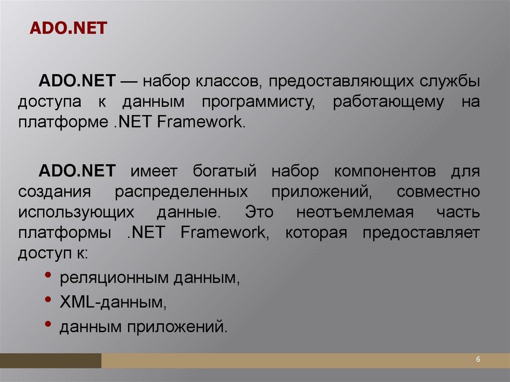 ADO.NETADO.NET — набор классов, предоставляющих службы