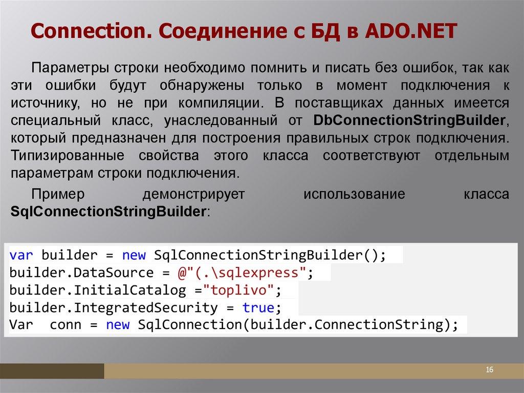 реализующий класс DbConnectionStringBuilder.