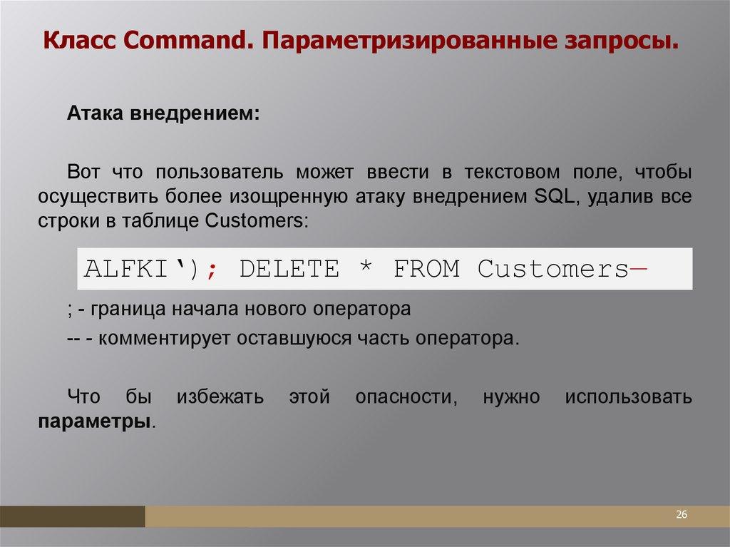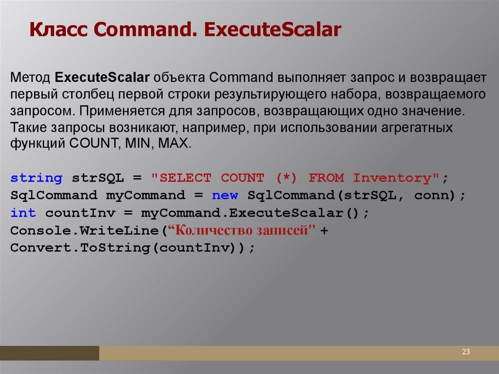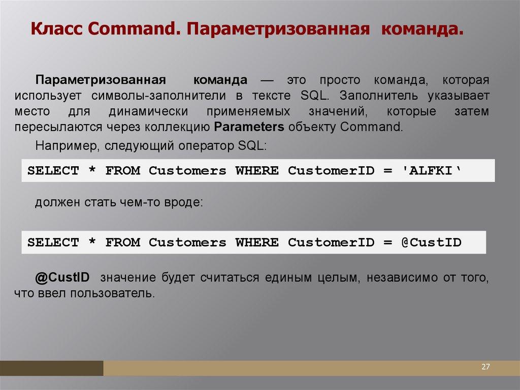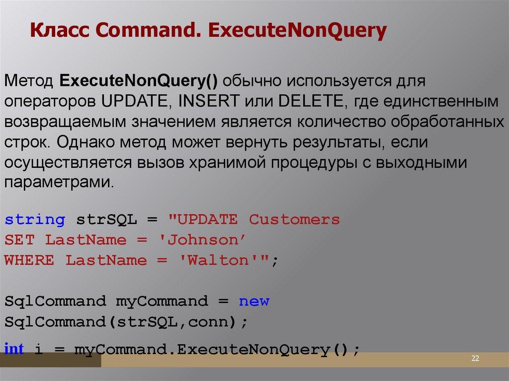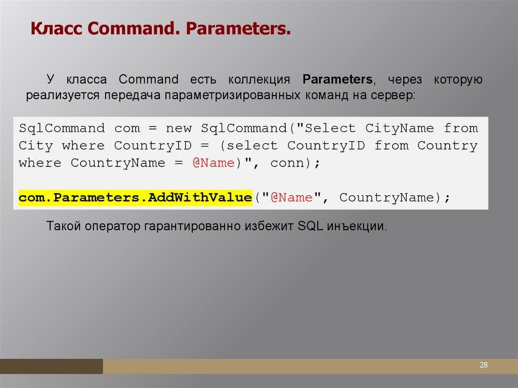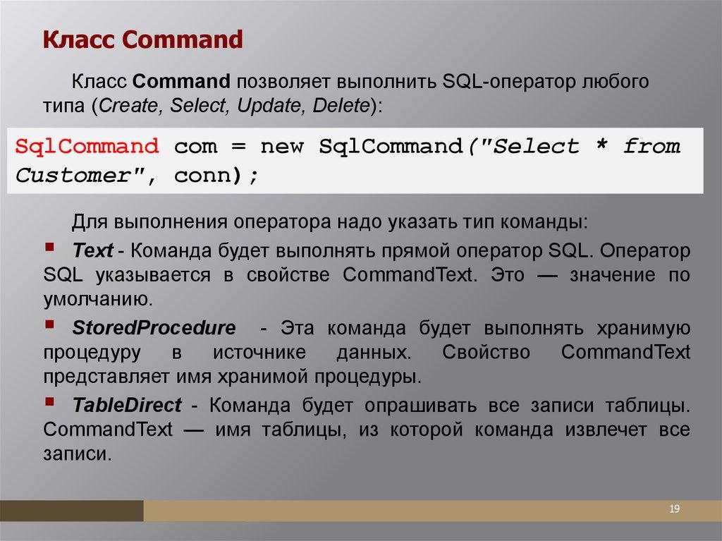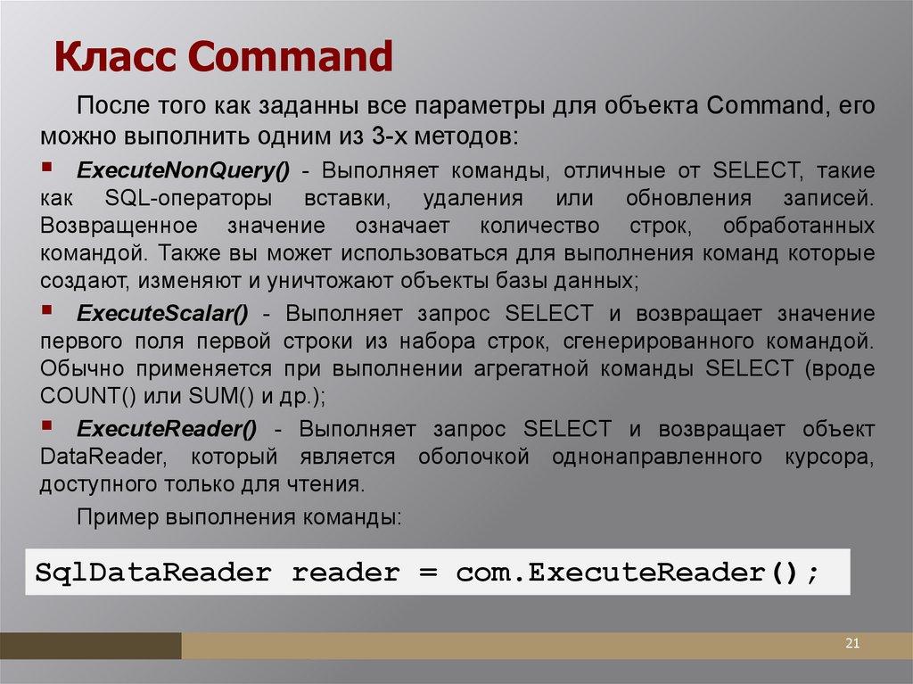 реализующий класс DbCommand.