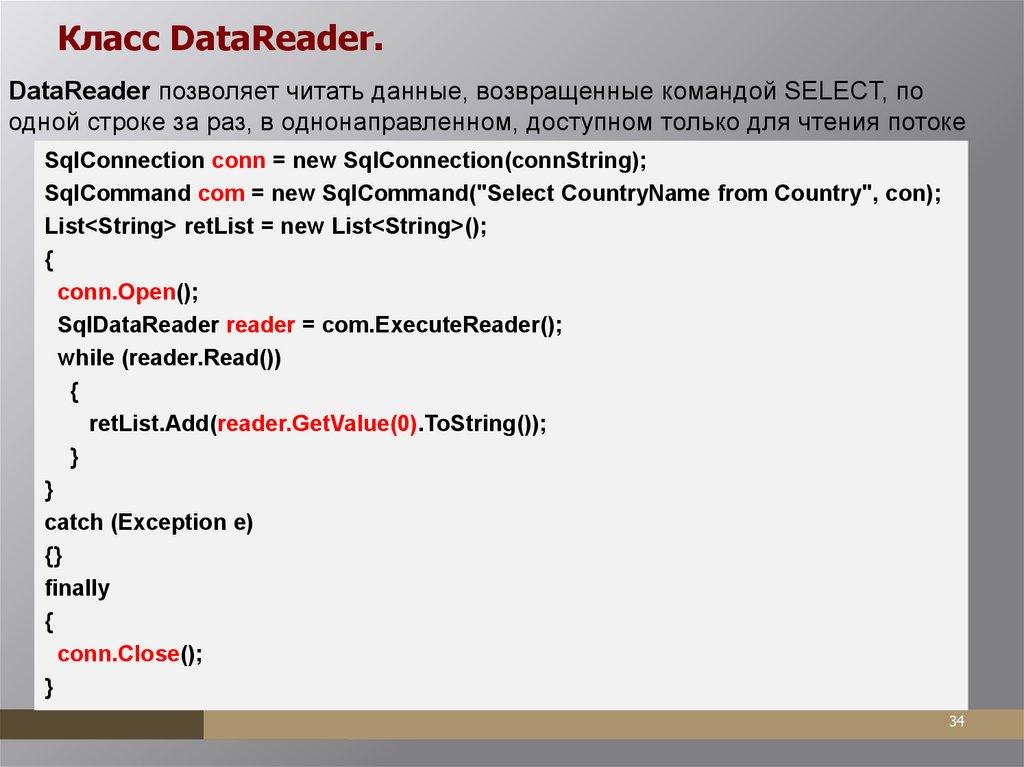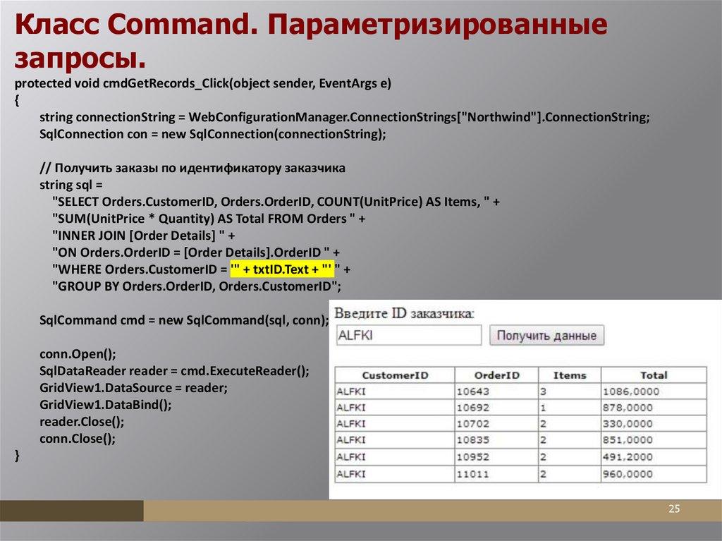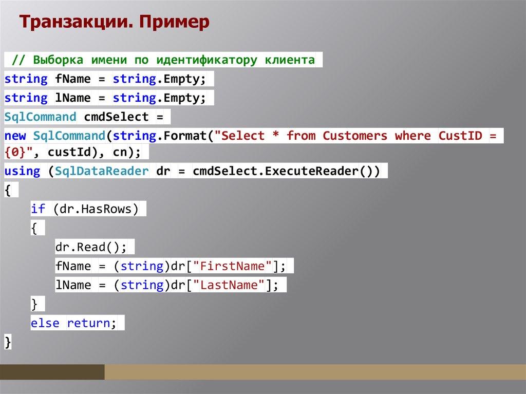 Выборка данных с использованием объекта DbCommand