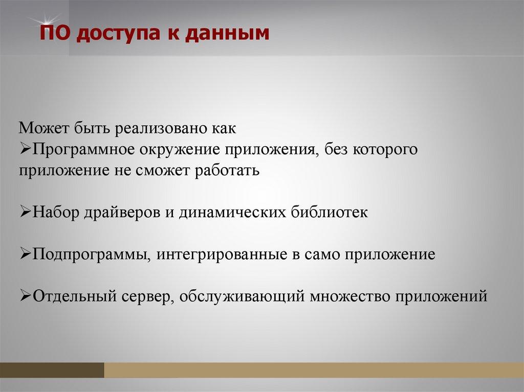 ПО доступа к даннымМожет быть реализовано как