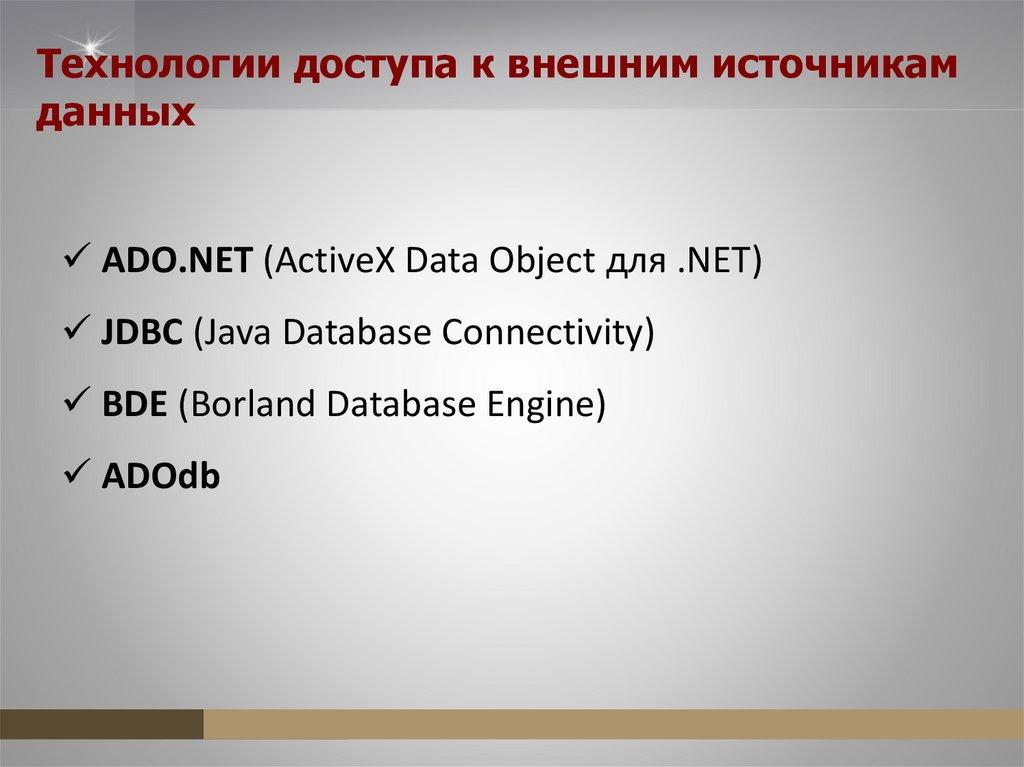 Технологии доступа к внешним источникамданных