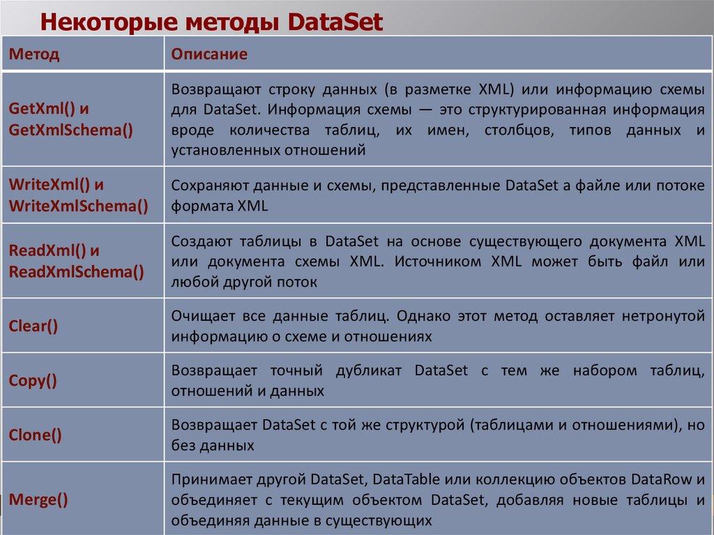 Некоторые методы