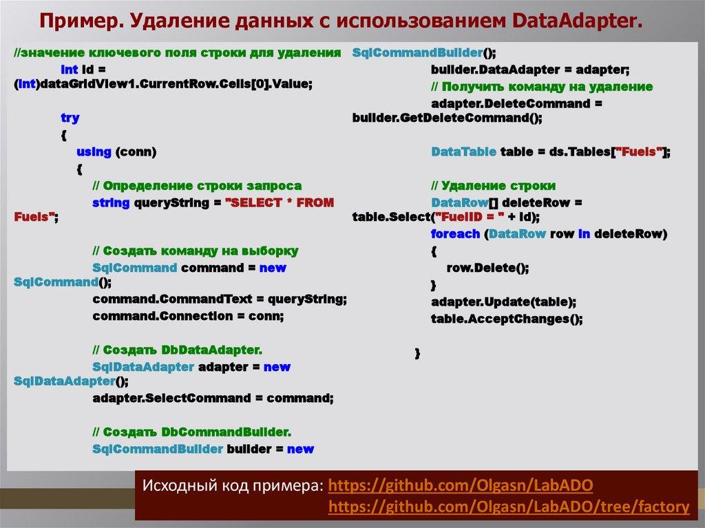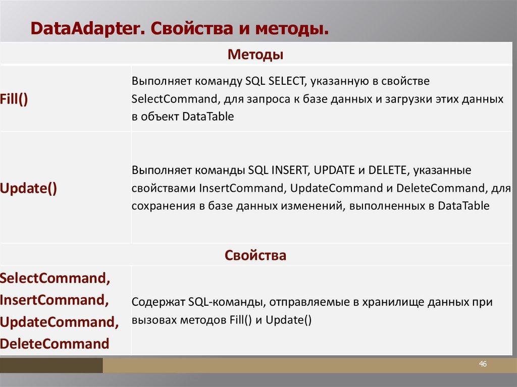 реализующий класс DbDataAdapter.
