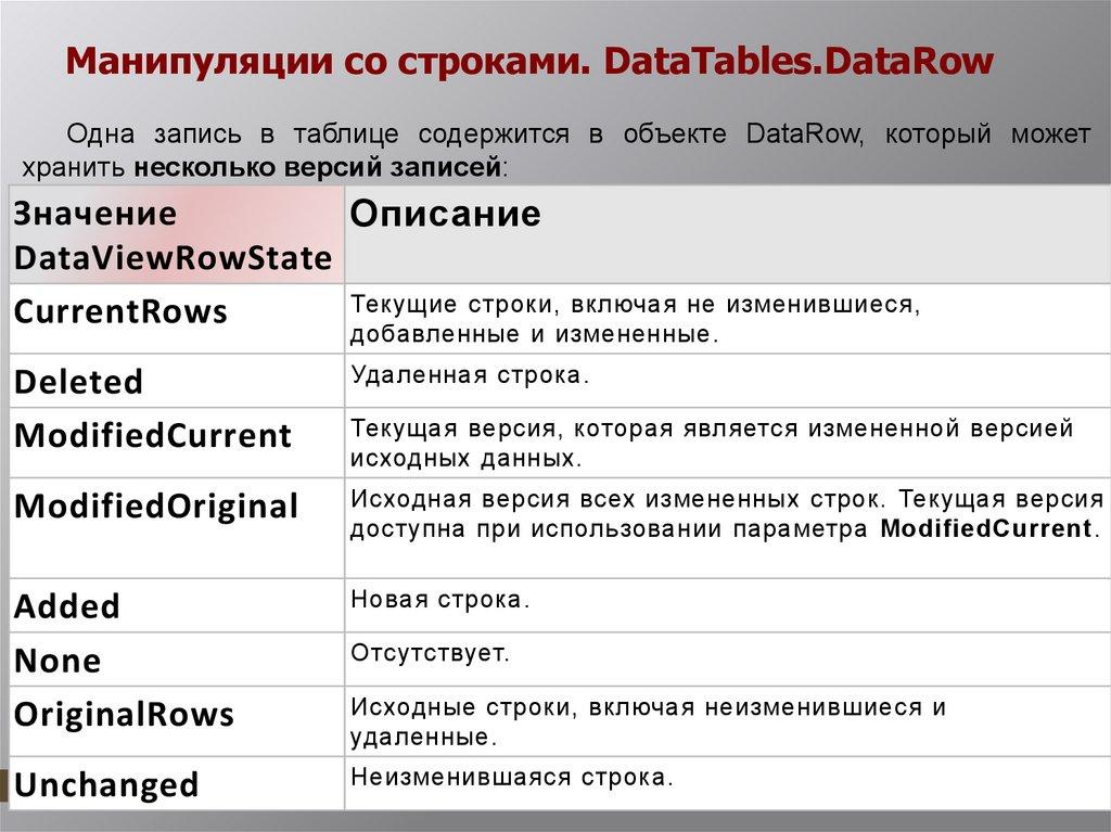 Фундаментальные классы ADO.NETSystem.Data- ключевые классы контейнеров данных, которые моделируют столбцы,