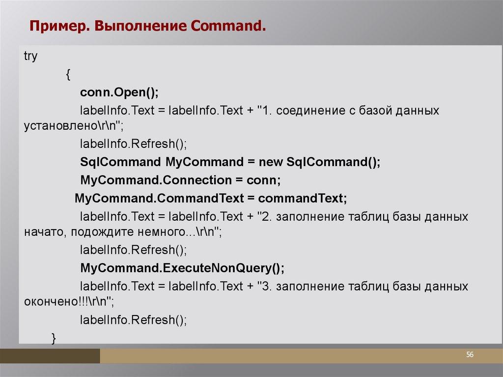 Выполнения команды с использованием DbCommand