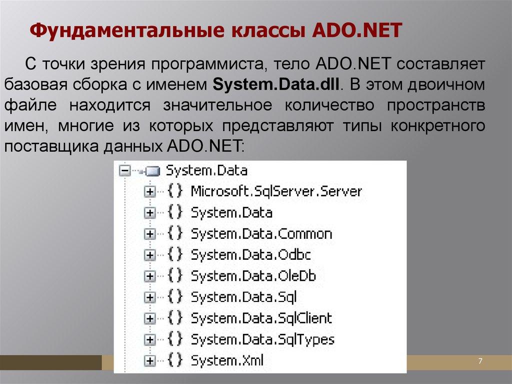 базовая сборка с именем System.Data.dll. В этом двоичном