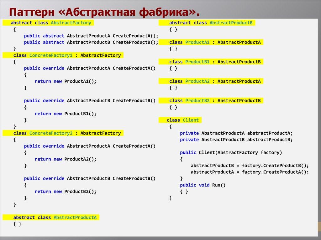 Фабрика классов сама по себе специфична для поставщика. Например,