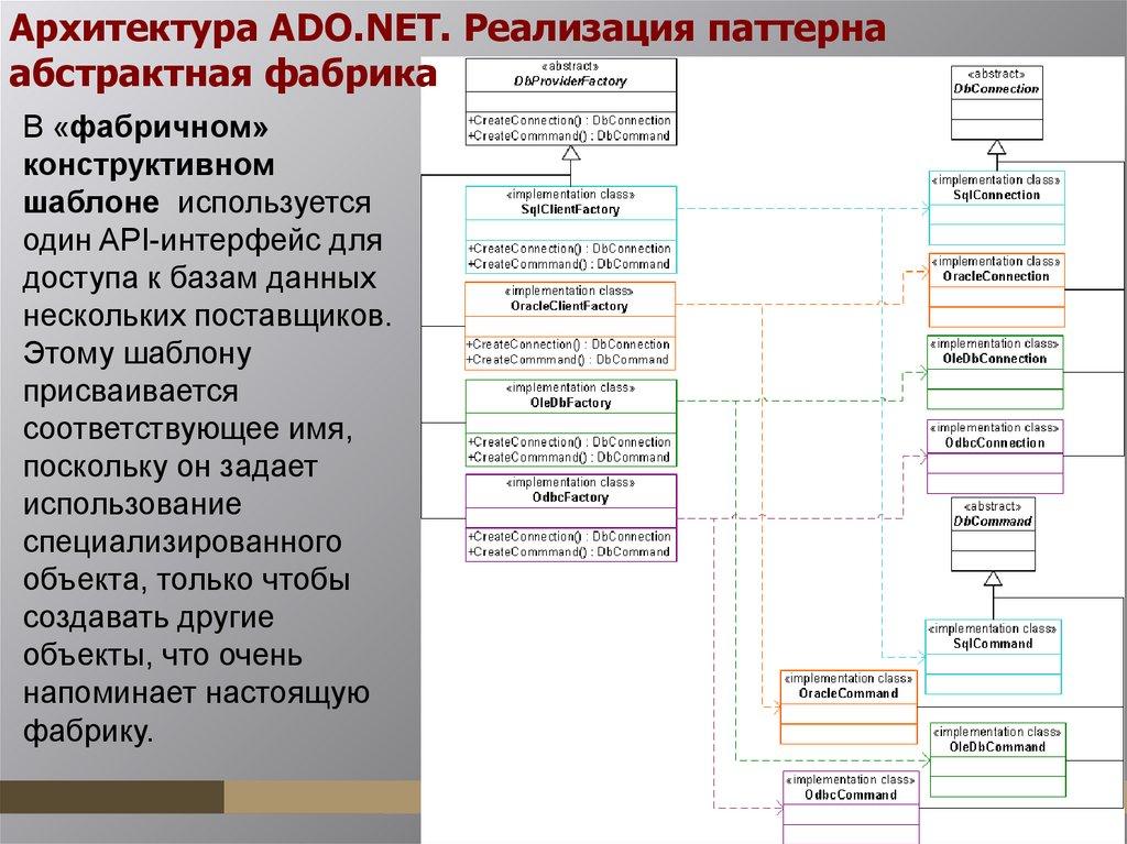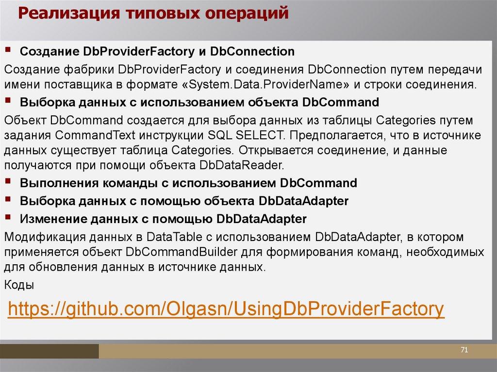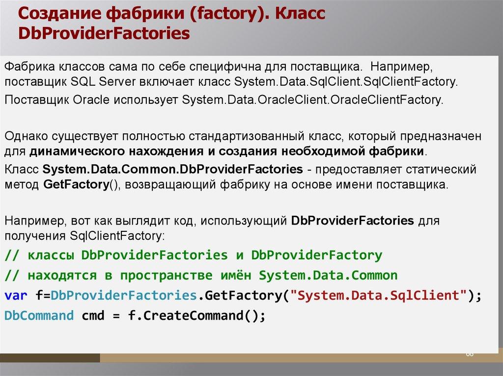 реализующих объект DbProviderFactory.