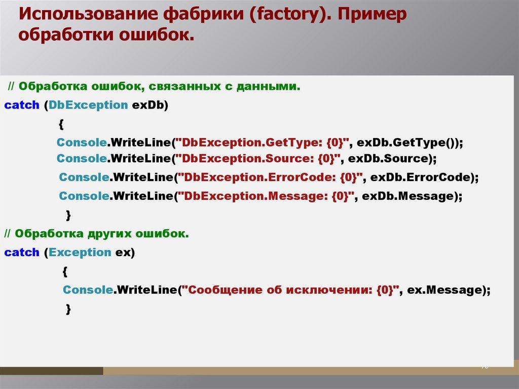 Использование фабрики (factory). Примеробработки ошибок.