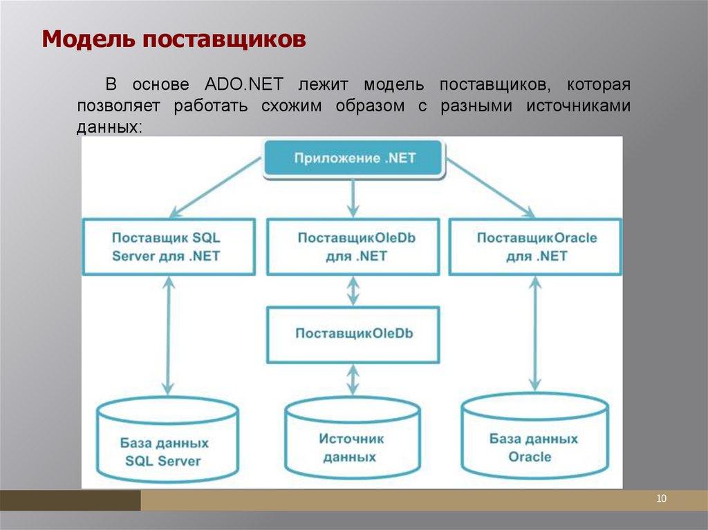 Модель поставщиковВ основе ADO.NET лежит модель поставщиков, которая