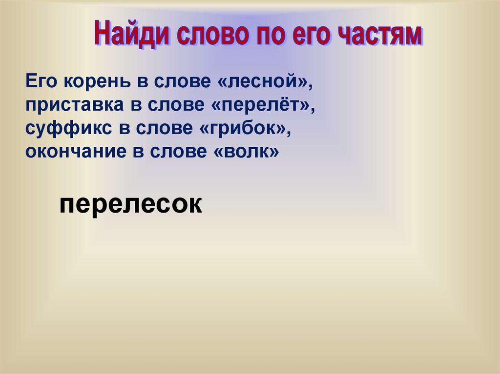 Его корень в слове «лесной»,приставка в слове «перелёт»,