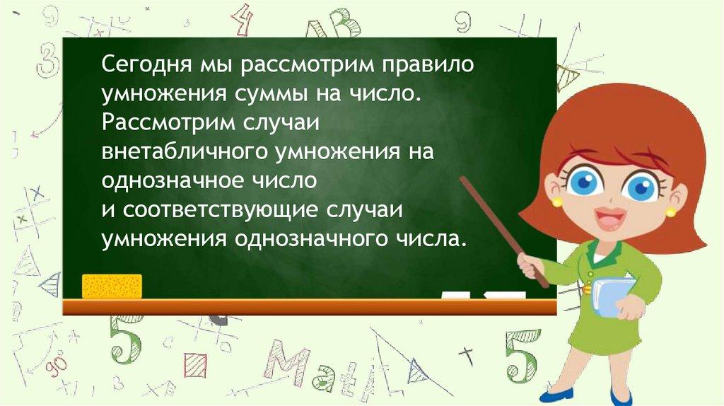 Сегодня мы рассмотрим правилоумножения суммы на число.