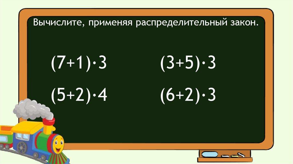 Вычислите, применяя распределительный закон.(7+1)·3