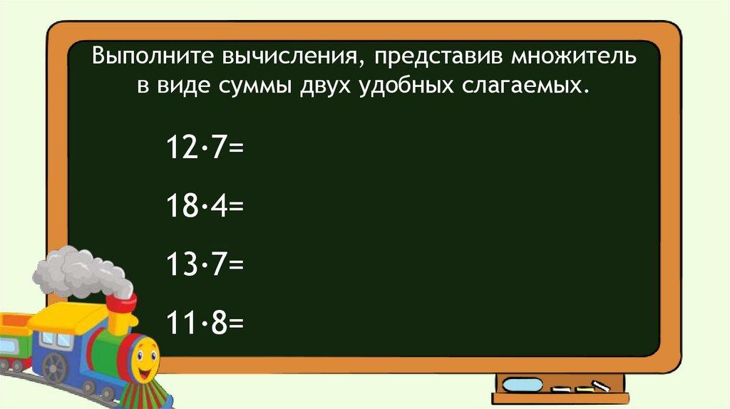 Выполните вычисления, представив множительв виде суммы двух удобных слагаемых.