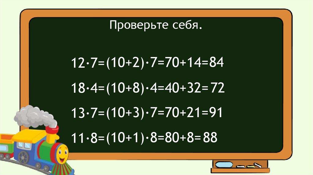 Проверьте себя.12·7=(10+2)·7=70+14= 84