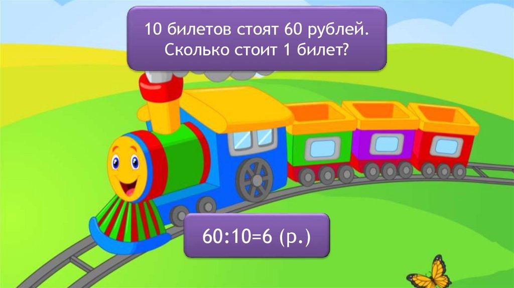 10 билетов стоят 60 рублей.Сколько стоит 1 билет?