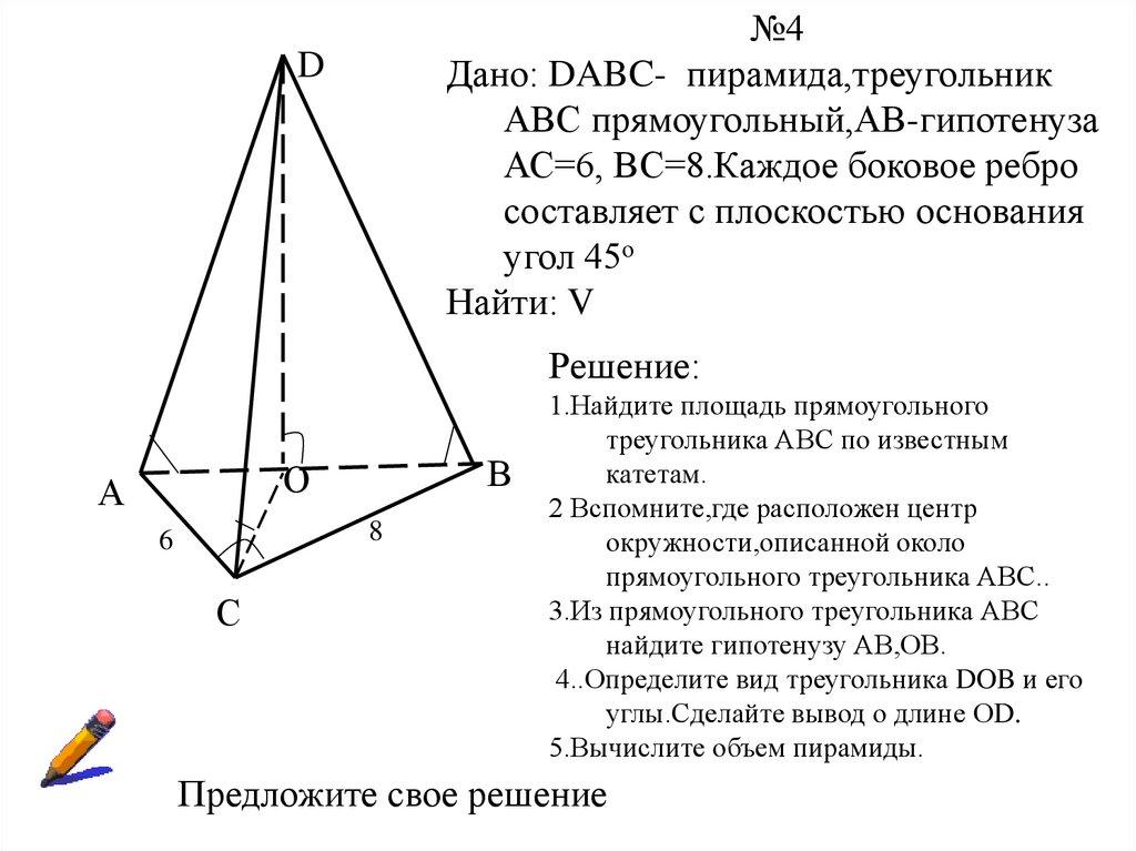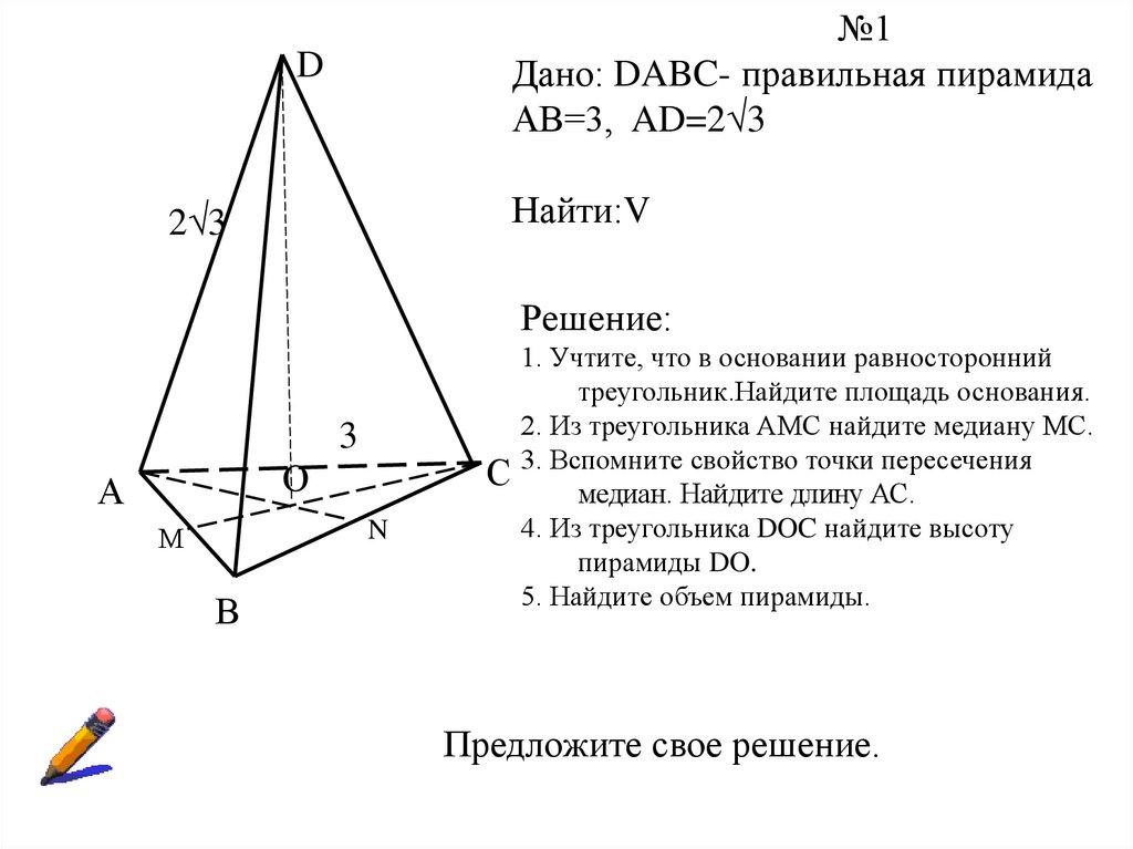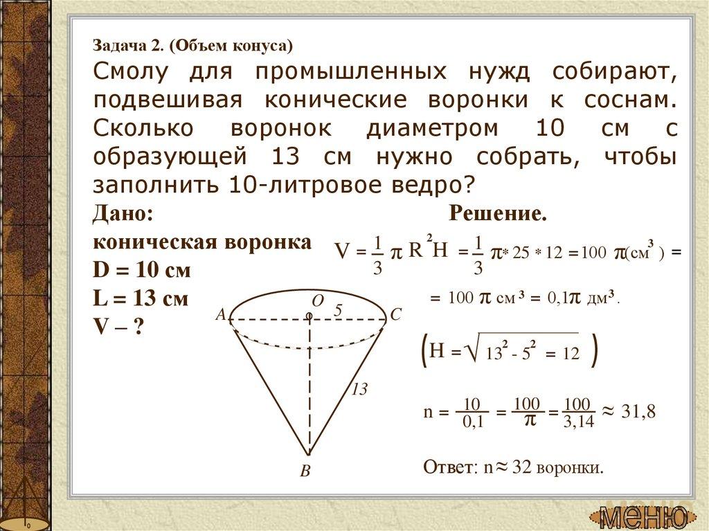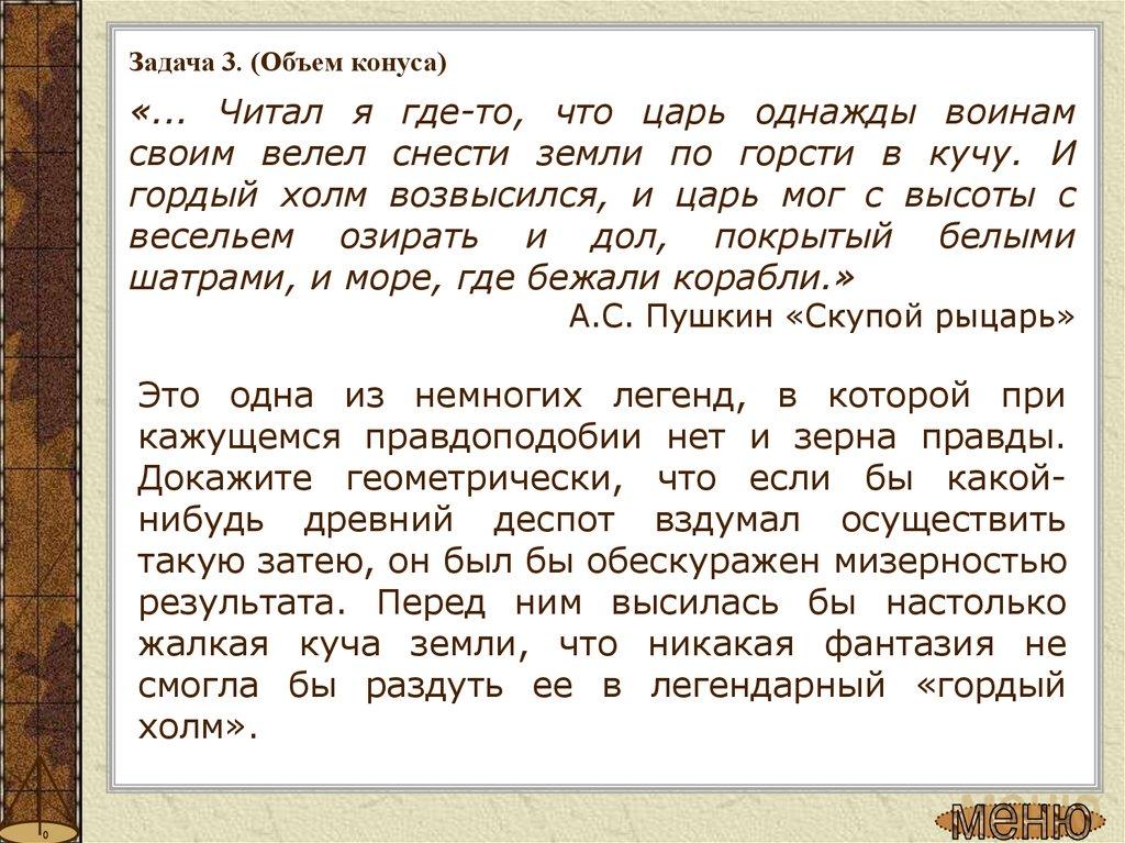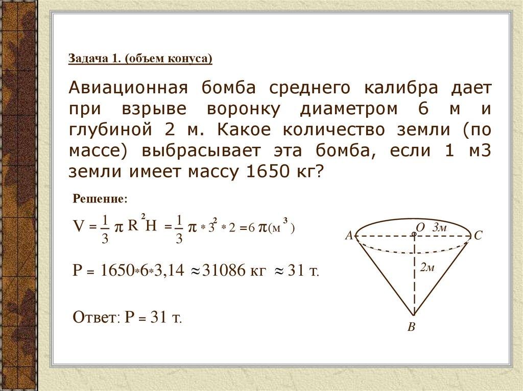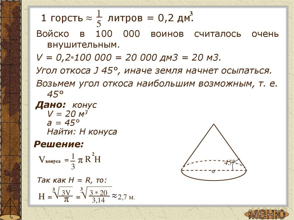 Задача 3. (Объем конуса)«... Читал я где-то, что царь однажды воинам