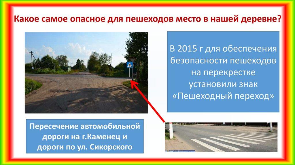 Какое самое опасное для пешеходов место в нашей деревне?В 2015 г для обеспечения
