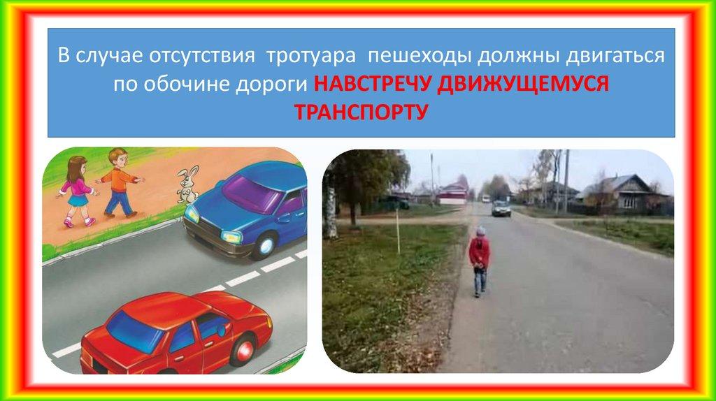 В случае отсутствия тротуара пешеходы должны двигатьсяпо обочине дороги НАВСТРЕЧУ ДВИЖУЩЕМУСЯ