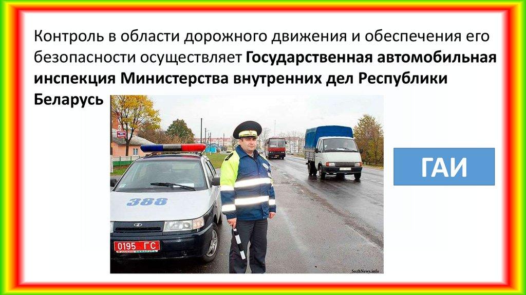 Контроль в области дорожного движения и обеспечения егобезопасности осуществляет Государственная автомобильная