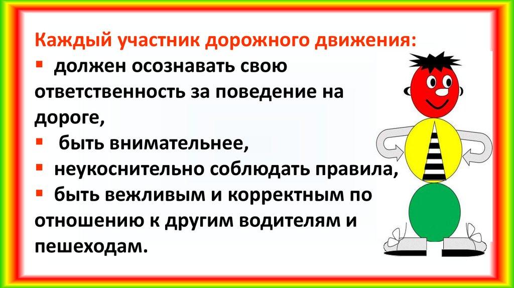 Каждый участник дорожного движения:должен осознавать свою