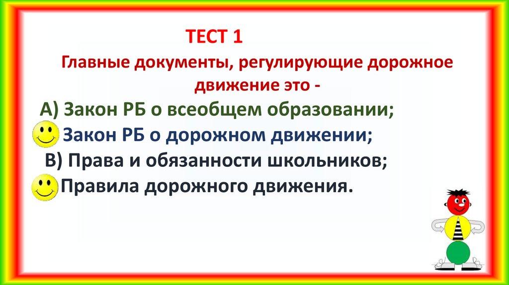 ТЕСТ 1Главные документы, регулирующие дорожное