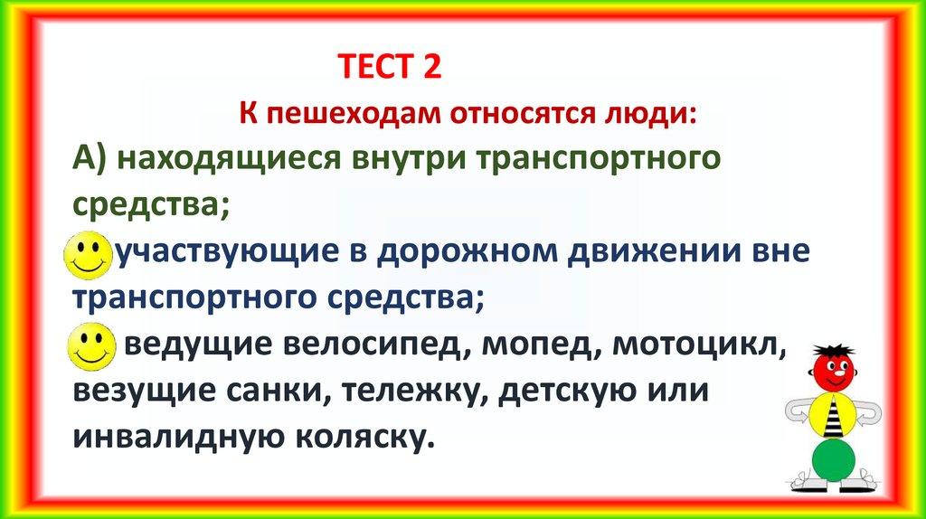 ТЕСТ 2К пешеходам относятся люди: