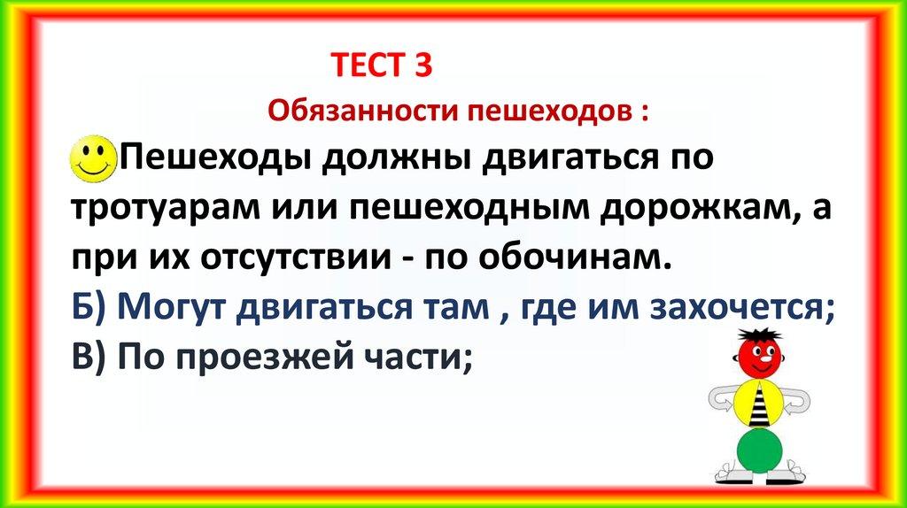 ТЕСТ 3Обязанности пешеходов :