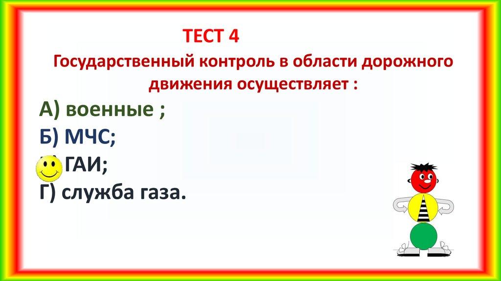 ТЕСТ 4Государственный контроль в области дорожного