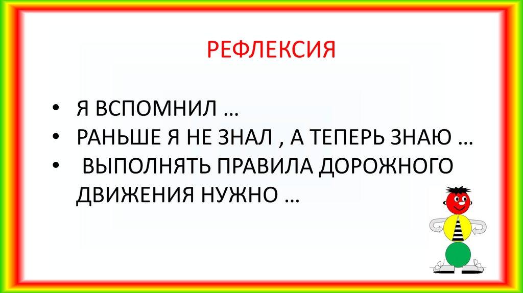 РЕФЛЕКСИЯ• Я ВСПОМНИЛ …