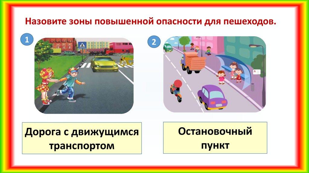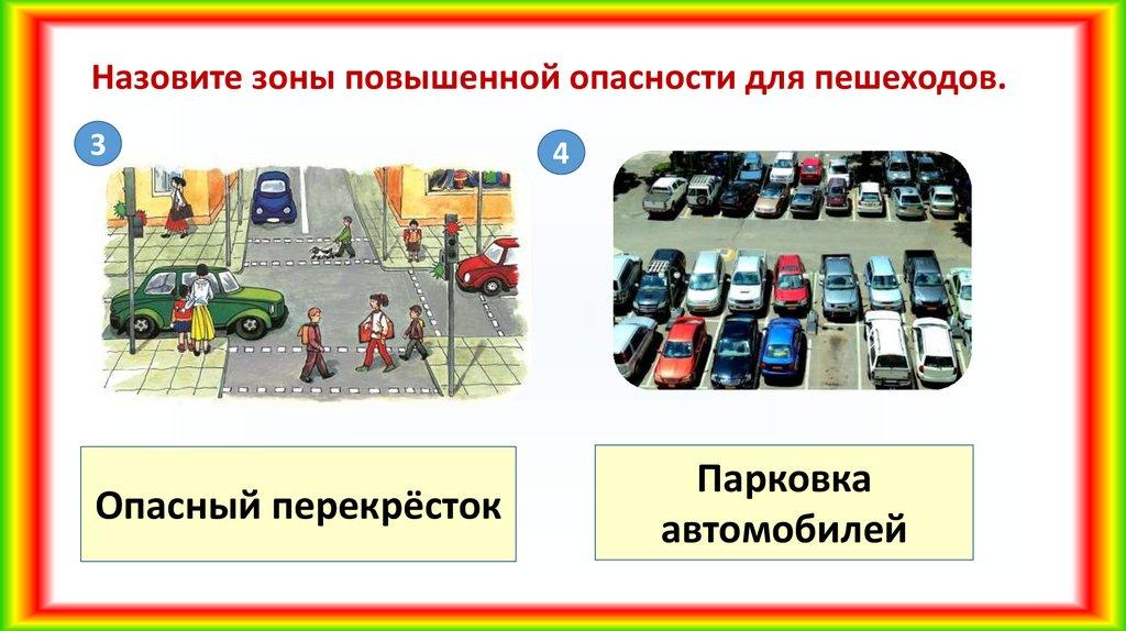 Назовите зоны повышенной опасности для пешеходов.3