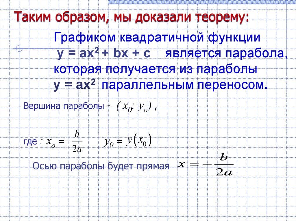 у = ах2, чтобы вершина оказалась в точке ( x0 ; y0 )
