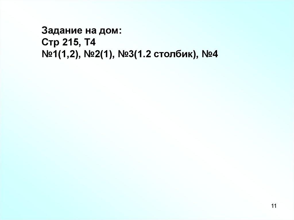 Задание на дом:Стр 215, Т4