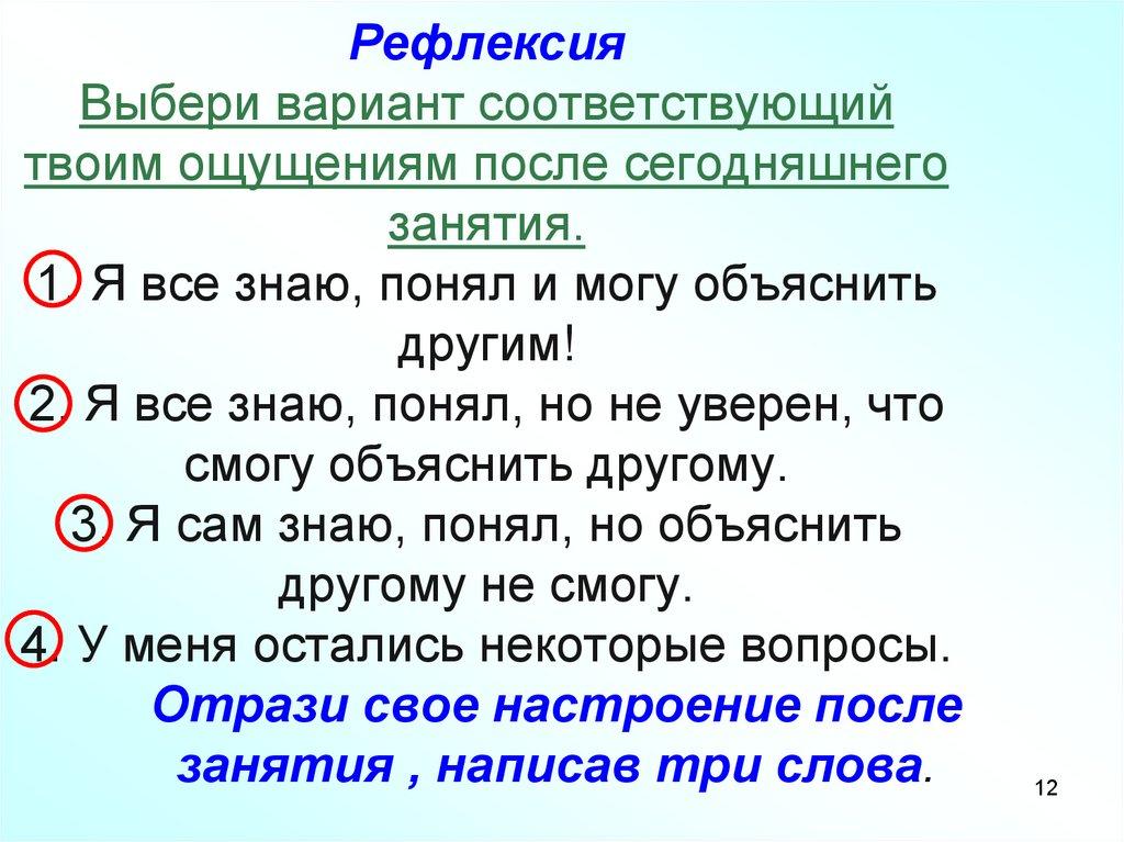 РефлексияВыбери вариант соответствующий