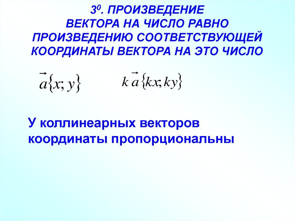 30. ПРОИЗВЕДЕНИЕВЕКТОРА НА ЧИСЛО РАВНО