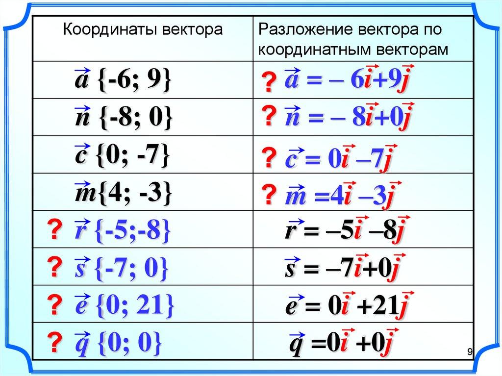 координаты вектора,