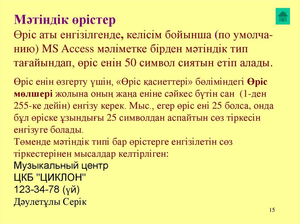 Мәліметтер базасы туралы негізгі түсінік. МҚБЖ Microsoft Access