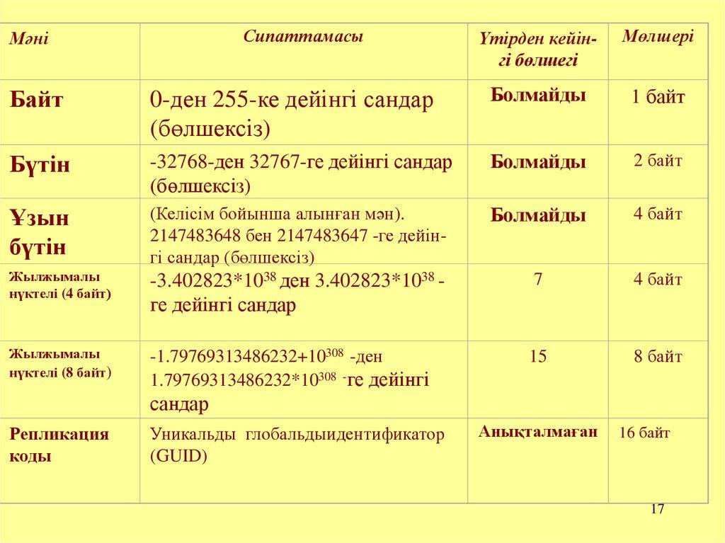 14. 7. Мәліметтер типтері: