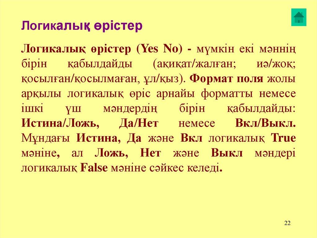 арқылы логикалық өріс арнайы форматты немесе