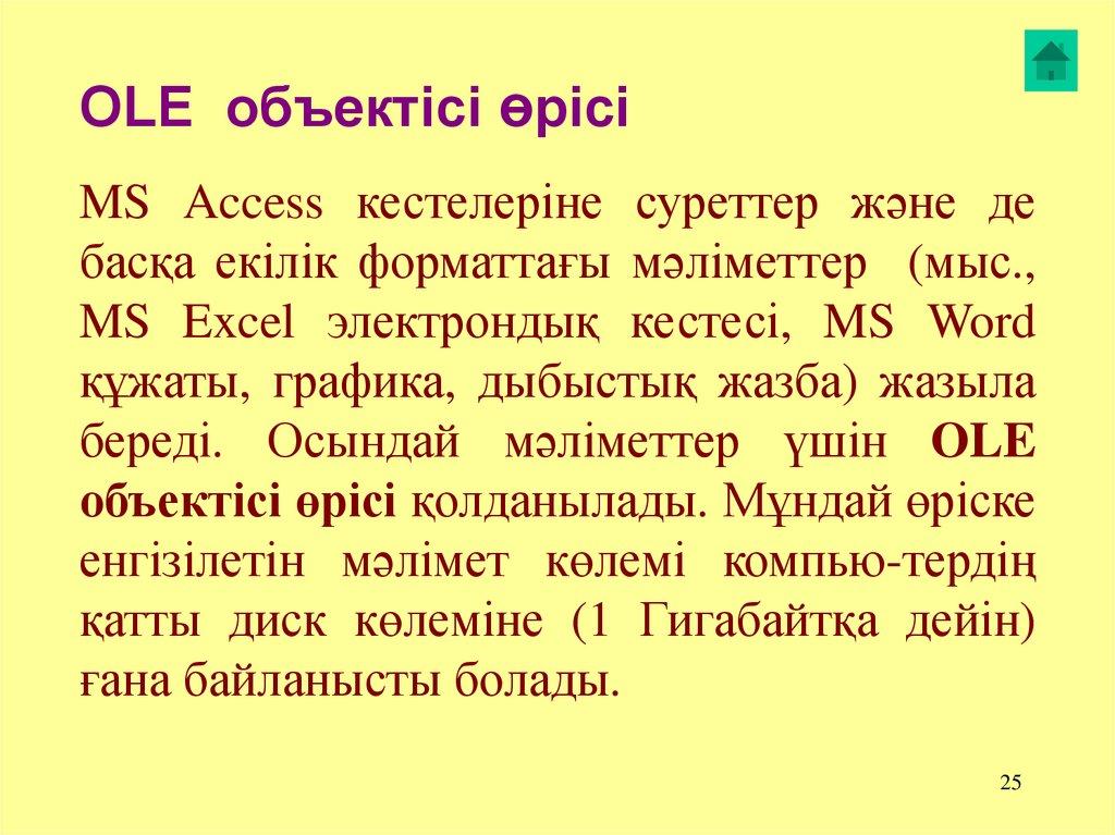 береді. Осындай мәліметтер үшін OLE